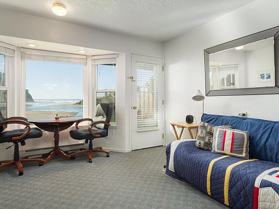OCEANFRONT getaway with iconic views of Proposal Rock and the great Pacific Ocean right out your back door! Studio style condo with murphy bed to utilize living space. Located in desirable Neskowin Village. Walk to Hawk Creek Cafe', Neskowin Store, the Beach Bistro and access to miles of prestine beach. Pefect Beach Getaway! ...Relax...Unwind...Enjoy!