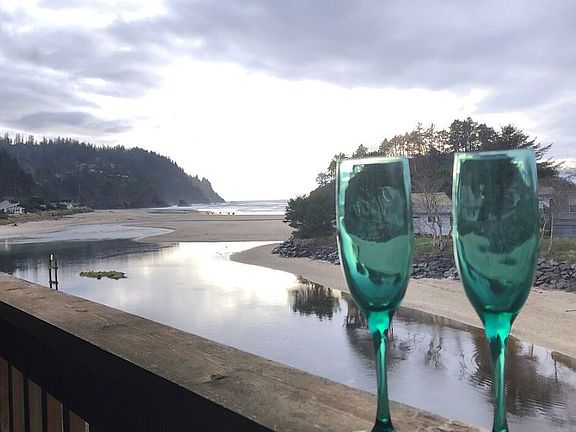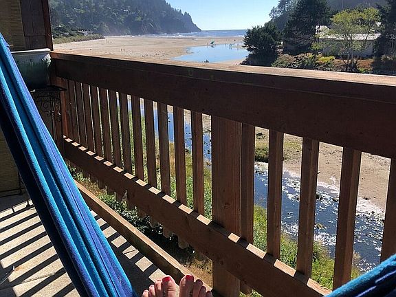 Ocean and creek view 1 bedroom 2 full bath condo (with the option of 2 studio apartments with private entrances. Rare opportunity to own a turn key vacation rental with a transferable STR permit! You can not get these permits in this area anymore! Fully remodeled with new appliances including dishwasher and luxurious rain shower. Quartz countertops and luxury vinyl plank floor. Ocean and creek view deck. Fall asleep to the sound of the creek and the crash of the ocean waves. Relax in the hammock on the deck and walk to the creekside cafe for dinner or enjoy coffee, and pastries from the market or wood fired pizza to go! Unit comes fully furnished including an electric fireplace and for the hot summer days, air conditioning! East side unit has a private entrance with a full bath with tub, rain shower and kitchenette. This rental has 5 star reviews on Airbnb and is going strong on it's 4th year of Super Host! Fully booked in the summer months with the option to rent year round if choose. Lots of rental income potential.