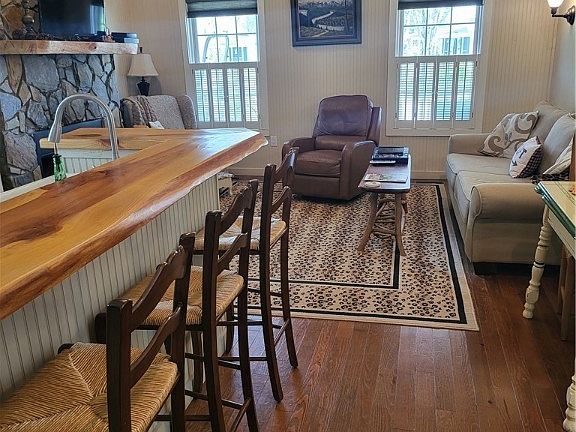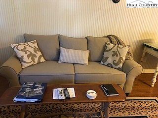 Nestled in the mountains of the High Country, enjoy this tastefully decorated Dogtrot-style home. It is somewhat furnished except for only a few items. The bedroom has two full-sized beds; the living room has a queen-sized pull-out sofa. This home has covered porches on the front and back, which include a porch swing and a sitting area with a table/chairs. Included are central heat and air, a heat pump, and a natural gas furnace. There is a stackable washer and dryer located in the utility closet. Just across the way, enjoy the Linville River. The monthly dues cover water, sewer, lawn maintenance, all common grounds, gazebo, river frontage, gravel drive, and snow removal. Also, enjoy a fire pit, multiple charcoal grills, and picnic tables. There are many nearby attractions, i.e., Grandfather Mountain, Linville Falls, Linville Caverns, Linville Falls Winery, and the Blue Ridge Parkway. This home has a successful short-term rental history. Enjoy the mountains!