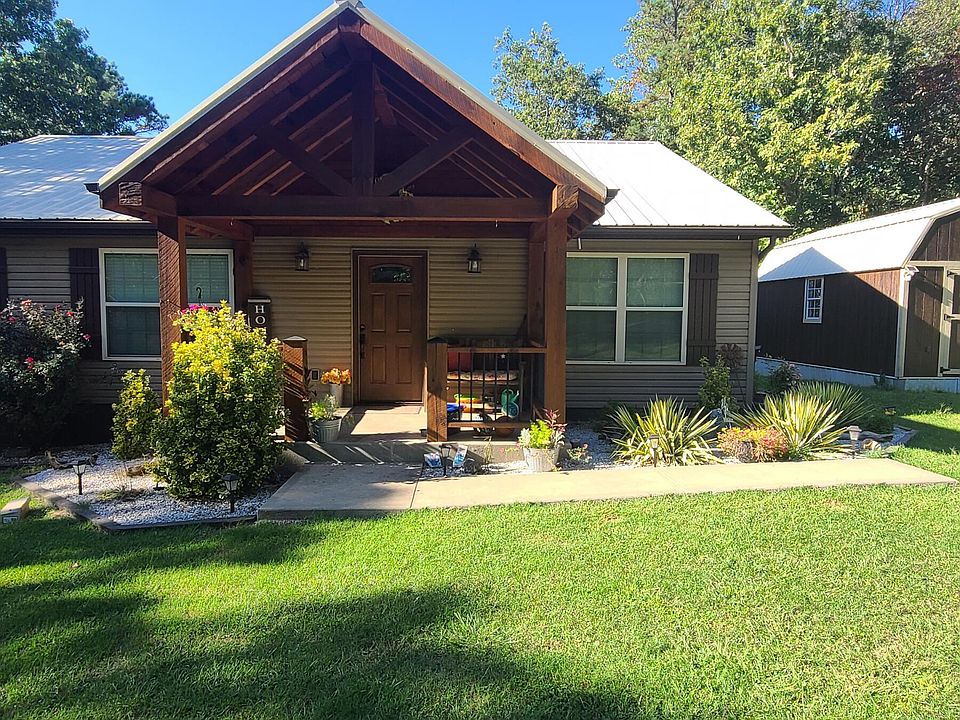 Country living only 6 minutes from Jasper, 25 minutes from Harrison, and less than 5 minutes from the Buffalo River. House sits on 4, mostly wooded but flat, acres with lots of deer and wildlife. It has three bedrooms with a possible fourth. There is a nice large kitchen and dining room area. House has a gorgeous front porch, nice den area, two hot water heaters & security system along with beautiful landscaping and a large fenced in back yard. There is a 20x11 lofted shed with 2 lean-tos on the property.