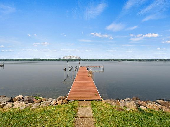 Are you ready to step into a new chapter of owning the sunsets on Cedar Lake? A mix of quintessential cabin and newer updates make this a perfect lake experience. Catch gorgeous lake views from the many indoor windows, the huge yard, fishing off the dock or sitting in a lawn chair by the stone firepit. This home sleeps 5 to 6 and has two baths. A kitchen remodel is marked by the hickory wood cabinets along with the even newer addition of a 2-car garage with a living space above, a living room, a primary bedroom ensuite and the deck! It's a perfect compliment to the aged pine walls and hardwood floors of the cabin years. It's all about the 1100 acres of water with the dock & lift included to get you started on your lake-loving life. Plenty of storage in the boathouse and shed for the toys. Bring friends & family to your new lake place to play at the sandbar, fish, pontoon, ski or board, and dine... or just gather at home because it's the best!