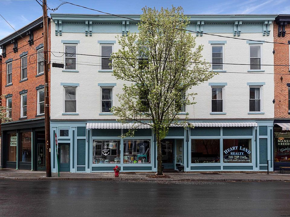 Excellent opportunity to own a piece of the Village of Coxsackie and its Reed Street Historic District! This mixed-use building includes two ground floor commercial spaces and two residential units — and is one of three contiguous mixed-use listings. The two ground floor commercial units are spacious and bright with large storefront windows and half baths. They’ve each undergone valuable improvements to electrical and plumbing as well as various cosmetic updates. The second floor residential unit is a lovely and bright 2-bed/1-bath in approx 1,200 sq ft. This apartment includes original wood flooring and details, walk-in closet, and large eat-in kitchen. Recent improvements include a renovated bathroom and new electrical service, appliances, water heater, north-facing windows, carpet, and interior paint. On the top floor is another 2-bed/1-bath unit with a bonus room/den in approx 1,300 sq ft. Spacious and with wonderful natural light, this apartment offers tons of original charm and detail including a stunning pantry wall with original wood cabinetry and a fireplace in the living/dining room. This unit has an updated bath and new plumbing, appliances, water heater, kitchen flooring, carpet, and interior paint. Additional financials including rent rolls and expenses available to interested parties. Commercial units are on month-to-month leases while current leases for residential units run through August and November of 2023. We also have listed the two neighboring mixed-use buildings at 45 Reed St and 1 Mansion St for someone looking to own a nice chunk of this historic village! The Village of Coxsackie (recently featured in The New York Times) is situated just minutes from the Hudson River and offers charming shops and eateries as well as the soon-to-open James Newbury boutique hotel and The Wire event center which hosts weddings and other events. More dining and shopping options abound in nearby popular towns – 10 mins to Athens and its riverfront park with summer ferry to Hudson; 20 mins to Hudson, Catskill, and Leeds; 30 mins to Albany; and, 35 mins to Chatham and Kinderhook. Coxsackie is also close to amazing state parks, golf courses, and skiing and it’s just under a 2-hour drive from the city!