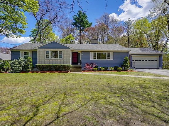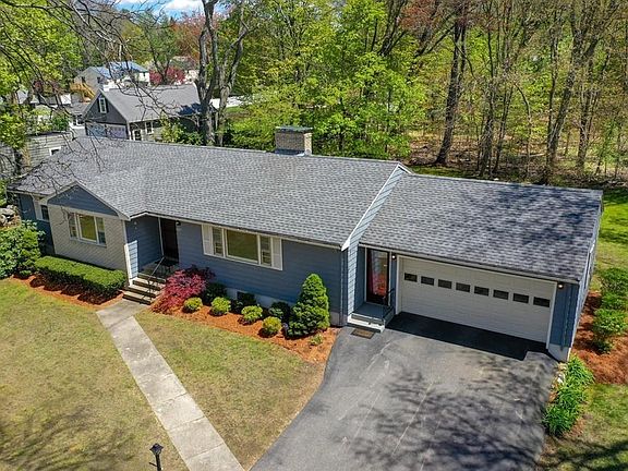 Upscale location and rare find for this freshly painted sprawling Ranch. Enter into a mud room from 2 car garage or the spacious covered porch that could easily be screened for the summer weather. Eat-in kitchen with lots of cabinets and built-ins overlooks the wooded private 3/4 acre lot. Relax in the newly carpeted fire placed living room. 4 good sized bedrooms with parquet flooring. Main bath is complete with full tub and separate shower. On the lower level you will be pleasantly surprised to see a newly carpeted family room with fireplace. Architectural updated roof. Located close to Lahey Medical Center and Burlington Mall. Enjoy the many new restaurants and shopping areas Burlington has to offer. Convenient distance to all major routes.