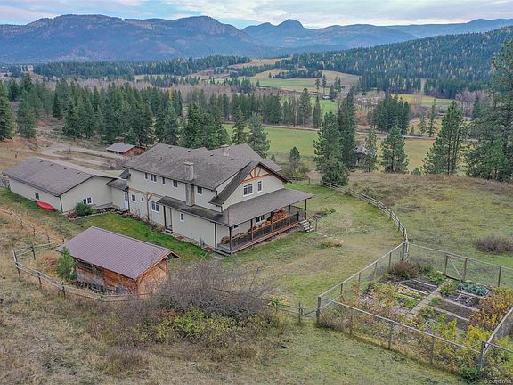 This 233 acre south facing ranch offers exceptional privacy, is surrounded by pristine nature and is stunning! Enjoy magnificent views from the European inspired custom build 5300 sq ft home. Attention to detail is everywhere in this 5 bed (plus office & den), 4 bath home featuring 9' ceilings, hardwood & tile flooring with zoned natural gas radiant heating, cherrywood kitchen cabinets & granite counters. Specifically designed to allow lots of natural light in, all windows are Euro tilt & turn with custom wood doors & hardware. This property is very versatile but is well suited for equestrian use with a 36'x40' barn with full tac room, bathroom & bedroom, 70'x40' hay barn & an outdoor riding area. There is an 800 sq ft 2 bed, 1 bath guest house, currently rented out. The property is fenced and X-fenced & backs onto crown land, well has been rated at 100 gpm & there are two water licences on Bessette creek for irrigation.