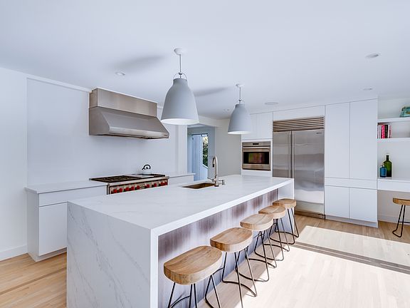 Rental Registration #: RP250677 This wonderfully renovated modern home is set on a lovely private acre in Southampton. This architectural gem features multiple floors with beautiful decking that extends the living and entertainment space nicely to the outside. The top floor features a comfortable den/media area with a large lounging deck as well as a small balcony. The main floor contains a spectacular brand new chef's kitchen with outdoor dining space, a full bathroom, and large living/dining area with direct staircase access to the pool area. The lower level offers an ensuite master bedroom as well as three additional bedrooms and a full bathroom. A large changing/wet area opens directly to the heated pool and sitting areas surrounded by lush landscaping. All bathroom floors and the pool room/changing area feature radiant heat.