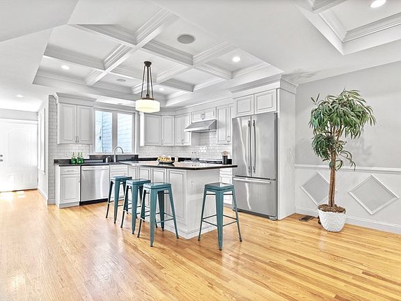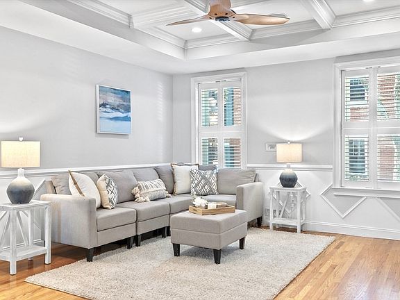 Idyllic 2 bed/1.5 bath in Historic Brownstone! With high-end finishes throughout, this modern unit provides a welcoming floorplan and great natural light and incredible detail throughout. Large and dimensional living space with 9' coffered ceilings is the perfect space to relax or entertain. Chef's kitchen features custom cabinetry, Jenn-Air 6 burner stove, professional grade vent hood, and oversized center island with built-in breakfast bar. Primary suite with adjacent spa-like bath featuring double vanity, tile surround shower, and jacuzzi tub. Large 2nd bed is ideal for guests, nursery, or home office. Enjoy the seasons on your direct access two-tier Private Patio!. Surround sound throughout. Central AC. Laundry in unit. A rare opportunity on one of Charlestown's most beautiful tree-lined streets!