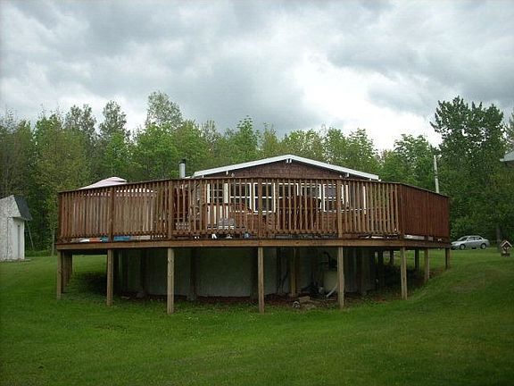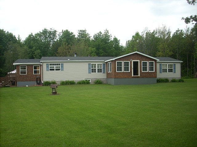 Located on dead end road on 9.65 acres of land is a 12 yr. old ranch style home in ex. condition.Part double wide w/ 2 lg. additions, extensive oak kitchen cabinets, vaulted ceilings w/ interior finished in knotty pine walls & ceilings in most rooms, open floor plan, addition area den & jacuzzi room, lg. deck leads to sunk in swimming pool. Plenty of room for a family, thermapane windows, lg. stone fireplace in living room, step down kitchen, 2 detached storage sheds