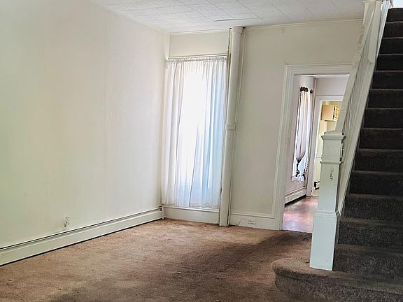 Great starter home or addition to your investment portfolio! Climb the steps to a wood deck perfect for a cup of coffee or entertaining. Enter the front door to the spacious and open living room. Just beyond that is the large dining room and kitchen. Leave it as it is or open it up! Off of the kitchen is the long backyard and back patio for summer evening dining or BBQ's. Downstairs you will find an unfinished full basement for laundry and storage. Upstairs you will find 2 spacious bedrooms and a large bathroom that was renovated in recent years. On the third floor, the open space could be used as a 3rd bedroom, playroom, office, the possibilities are endless. Come check this out for yourself! Several homes on the block are being renovated currently and will be listed for considerably higher. Get in now and make this yours!