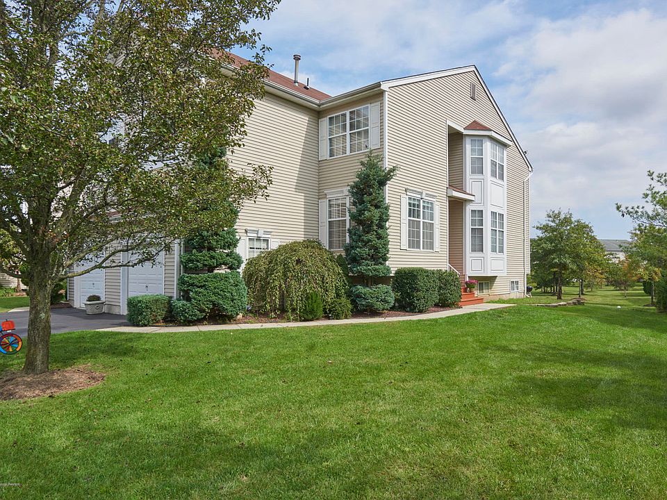 Largest model in the development, the Denham model has a wonderful open floor plan. This end unit carriage house has much to offer starting with 9 ft. ceilings and hardwood floors on the first level. Two story entry brings you into the formal living room and dining room. The family room with sliders is right off the kitchen that boasts younger cabinets, granite counter tops and stainless steel appliances and pantry. The large master bedroom has vaulted ceilings, custom walk-in-closet and attached bath with a soaking tub, shower and double sinks . Another two generous sized bedrooms, bath and upstairs laundry room complete the second floor. Add to that a finished basement and one car garage and your new home is just waiting for you.