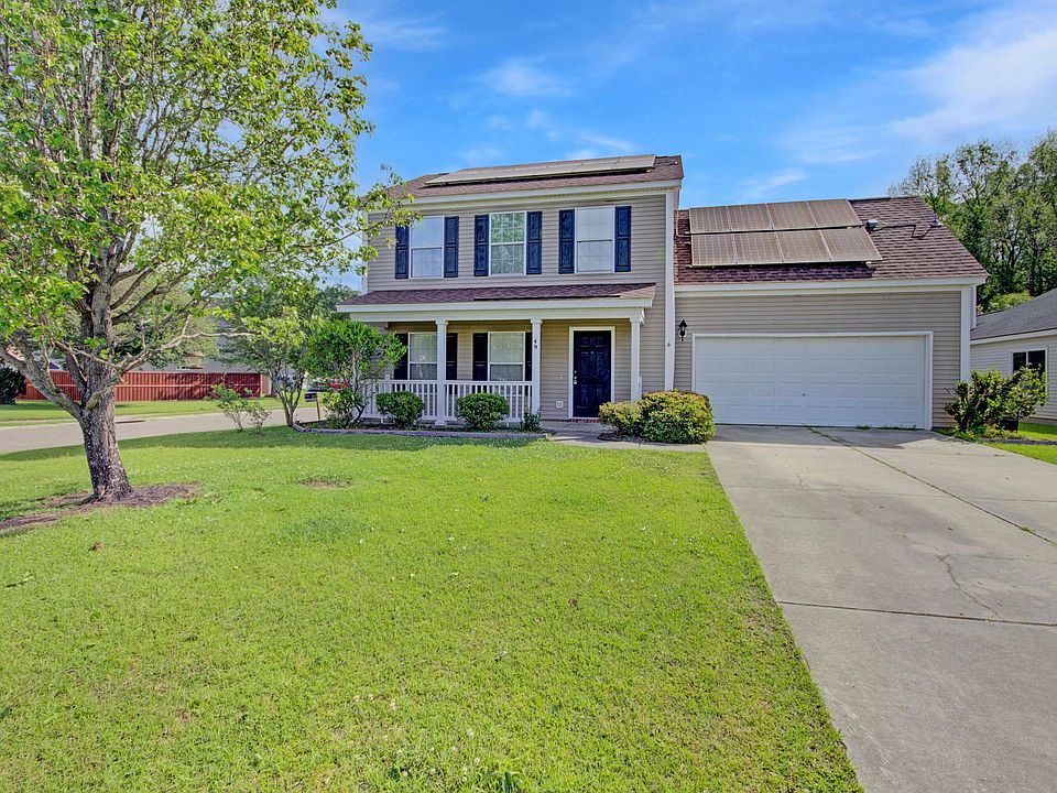 Seller to provide a $5,000 credit for cosmetic updates. Welcome Home to 49 Blue Jasmine located in highly desirable Scotts Mill subdivision part of Dorchester County School Districts. This large corner lot traditional home has a fully fenced back yard and fully paid off solar panels ready for a new owner. The downstairs features an open layout of living, dining, and kitchen space. The laundry room is off the kitchen with the half bathroom downstairs. All three bedrooms are located upstairs with a bonus room above the garage. Two of the bedrooms share a hall bathroom. The primary bedroom has an ensuite bathroom and walk in closet. Schedule your showing today before its gone!