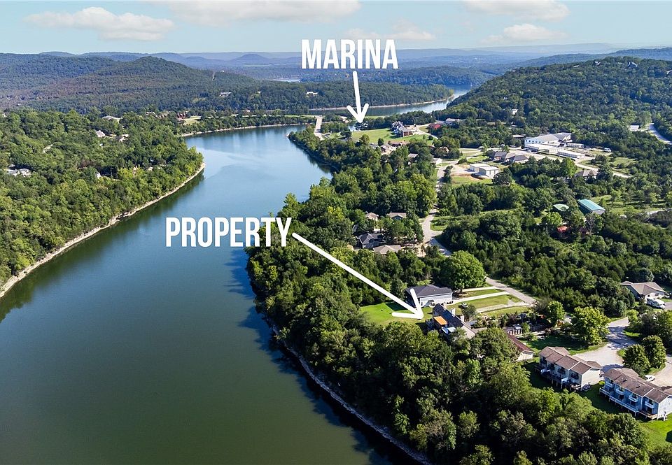 Great location! Located on the tailwaters of Beaver Lake and the gateway to Table Rock Lake. On the water! Spacious townhouse with an adjacent walking trail along the lakefront. Features 3 bedrooms, two full bathrooms and a cozy kitchen with a dining area. The primary bedroom on the main floor has its own bathroom with a whirlpool tub and a walk-in shower as well as access to the lower deck. The living room has an open floor plan with a wood-burning fireplace and deck access. This also comes with an extra lot with plenty of parking space. External water connection for landscaping purposes. New roof, new LVP flooring and carpeting in bedrooms, new granite countertops and new interior paint. This home is move-in ready. Come make this property yours right now! Almost free.