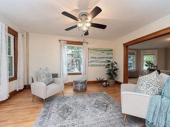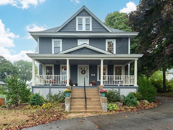 Opportunity knocks, and with a NEW PRICE! Charming, move-in ready colonial with quintessential New England curb appeal & superb location. With 4 bedrooms, 2 full baths & nearly 2200 square feet, this classic beauty offers quality construction, spacious rooms, modern amenities & easy-flowing floorplan that works perfectly for entertaining. Substantial updates include NEW ROOF; NEW WINDOWS & SIDING; 200 AMP ELECTRICAL & BRAND-NEW BATH. And what about that enormous front porch? Sure to become the favorite spot to cozy up with a good book! So many desirable features, including maple hardwood flooring; crown molding; large windows flooded with natural light; convenient main-level laundry; large level corner lot; private patio with firepit; efficient natural gas; city water & sewer; walk-out basement with storage & workshop; garage, and 2 bonus rooms with endless potential in the walk-up attic. Distinctive north-side neighborhood with exceptional highway access. Welcome Home!