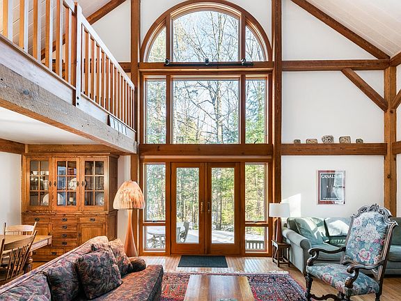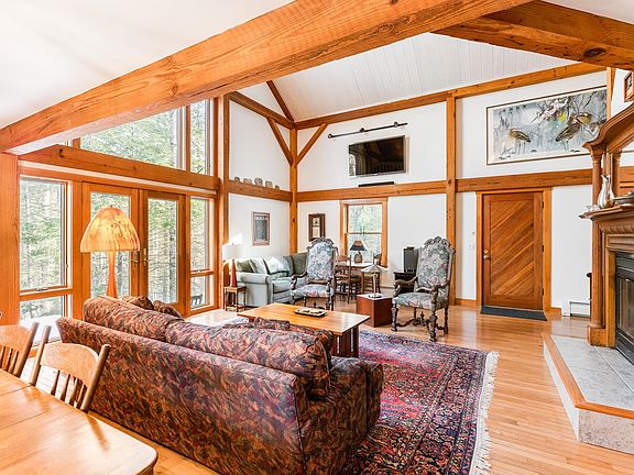 Custom-designed, Yankee Barn Home in Eastman! Thoughtfully situated for privacy in the heart of Eastman while affording an easy walk to the North Cove Beach. First time to the market! Designed with the utmost attention to detail, this home features a warm, welcoming living room with fireplace, cathedral ceiling and decorative beams throughout. Three bedrooms, 2 ½ baths with a primary bedroom on the main level. Generous mudroom with convenient first-floor laundry. Enjoy the beautifully landscaped natural setting while sitting on the back patio. The Eastman Community is nestled in the Dartmouth-Lake Sunapee Region and perfectly located to take advantage of all four seasons in New Hampshire. Eastman offers a 2-mile lake for all the water fun you could hope for, an Activity Center with heated indoor pool and fitness center, an 18-hole championship golf course, tennis courts, pickle ball, groomed cross-country ski trails, plus hiking trails. Come explore this community with easy access to I-89 for a short commute to Lebanon, Hanover, Lake Sunapee and more.