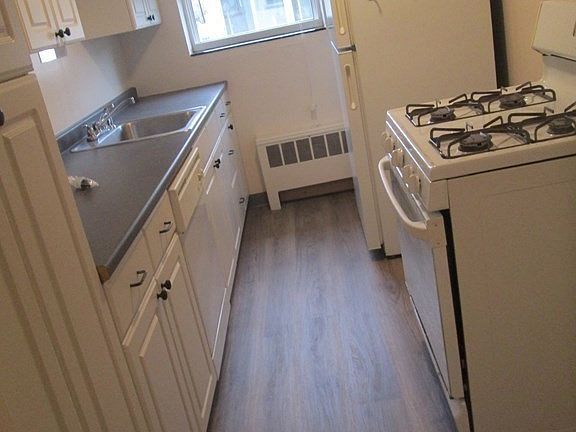 Completely renovated In Non-smoking building, Bright & sunny top floor one bedroom with new wall to wall carpeting, includes heat & hot water, living room/dining room combination, fully appliance eat in kitchen, freshly painted, cat ok, 1 car off street parking, additional storage, laundry in building. Walk to shops and restaurants.Tenant pays In small non smoking brick building top floor completely renovated 1 bedroom with new wall to wall carpeting. includes heat & hot water & newly painted & professionally cleaned, 1 car off street parking, fully appliance eat in kitchen, living room/dining room combination, additional storage, cat ok, coin operated laundry available, Available now, 1 month broker's fee. 4100
