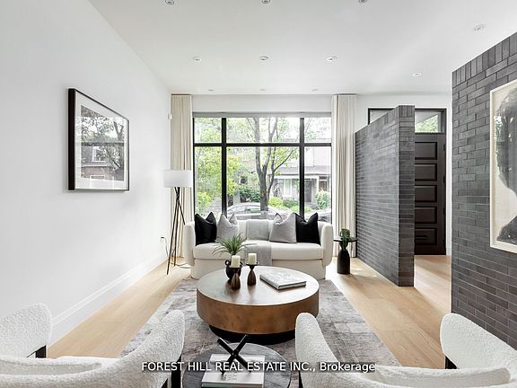 Welcome to Brookfield House, the ultimate blend of architectural mastery and urbane sensibility in the heart of Trinity Bellwoods. A thoughtfully designed true family home built by Blue Lion Building for the firm's own architect. The emphasis on high-quality architecture and attention to detail make this home a masterwork of light, volume, and space. Anchored by a soaring 27-foot atrium that funnels natural light into the heart of the home, each graciously proportioned room functions as a canvas to showcase its future owner's personality. Entertaining is effortless in the spacious living and dining room, where oversized windows flanked by custom drapery flood the space with natural light. The bulkhead-free ceilings add to the seamless scale of the home. Wire-rubbed white oak hardwood floors contrast with the charcoal brick feature walls, creating an ambiance of warmth and sophistication. Step through to the rear half of the home into the spacious kitchen and large family room, featuring a generous run of custom white lacquer cabinetry, complimentary Caesar stone countertops, and stainless steel appliances. The backyard is an urban oasis with irrigated landscaping by BSQ Landscape Architects, connected directly to the rare 2-car garage with laneway access. The second floor overlooks the dining room and accesses the spacious primary bedroom featuring a 6-pc en-suite and a large W/I closet. Three other large bedrooms with W/I closets add to the functionality of the home. The third floor features a flex-space lounge and is surrounded by inspiring city views, while the fully finished basement adds more functional space. Brookfield House is truly a home with no compromises - the ultimate blend of form and function. **EXTRAS** See the Features & Finishes sheet for all details. Steps to Trinity Bellwoods Park and the best restaurants & shops of Ossington and Queen Street. Laneway house report available.