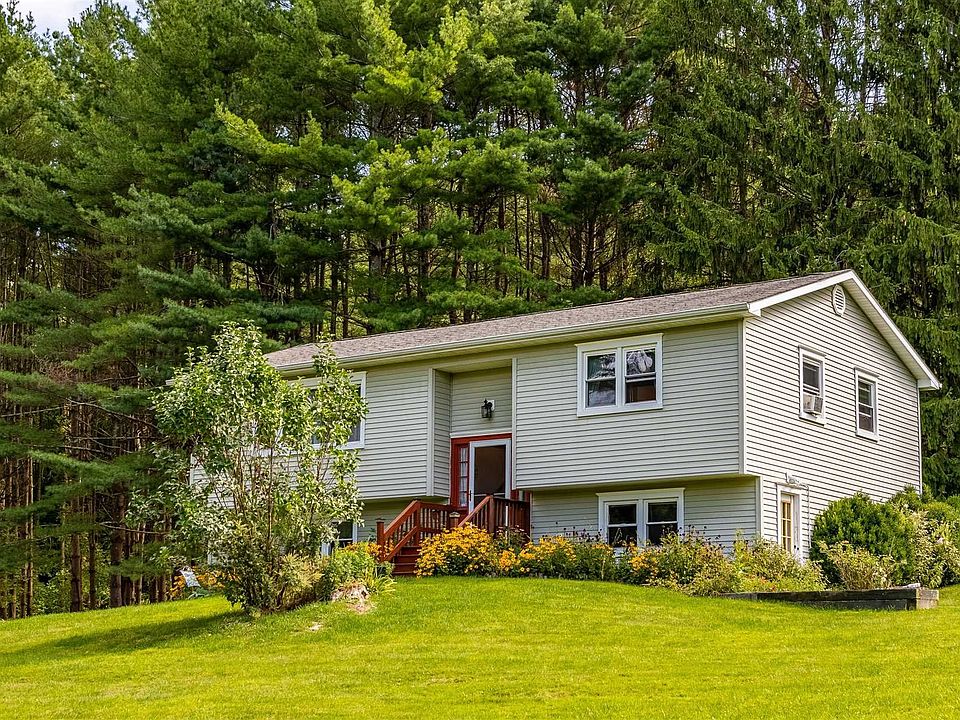 Private setting off of Private road but just minutes to school, town, stores and train. Nestled on over one acre of tree lined level property stands this lovely open floor plan ranch which has a walk out basement just waiting to be finished into family rm or office. It has a large open kitchen to dining & living room. Hardwood floors on the main level, deck and patio, lots of light in this home.