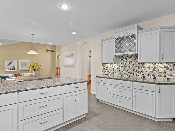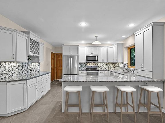 This sprawling ranch home sits on nearly a half acre in a tranquil cul-de-sac. Inside, a gorgeous newer kitchen with granitew countertops, stainless steel appliances, breakfast bar and chic ceramic flooring awaits. A wine and coffee bar area also adds a touch of luxury and convenience. The open layout seamlessly connects the kitchen and breakfast room to the sunlit great room with cathedral ceilings and a wood-burning fireplace with brick to the ceiling. The primary bedroom suite features a remodeled bathroom with double sinks and separate shower/water closet area. You can also walk out to a serene patio space from the suite. An additional 3 bedrooms/ 2 full bathrooms provide ample space for family and guests. A sunroom off the breakfast room offers scenic backyard views. Host memorable dinners in the separate dining room. The backyard is a peaceful oasis, perfect for relaxation and entertaining. The partially finished lower level adds extra living space to this exceptional home. Additional Rooms: Sun Room