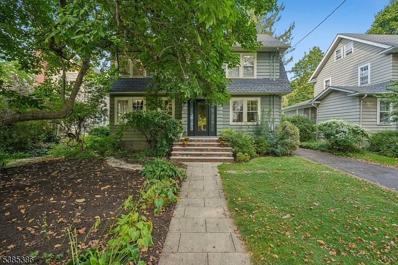Tucked back on an idyllic tree-lined street,this enchanting home is situated close to Maplewood's vibrant downtown, NYC-direct train & a stone's throw to Maplecrest Park (offering playground, sports fields & walking paths) & library! Curb appeal shines through lush greenery & mature trees--glorious in every season. Inside, minimalism meets modern design: sunlit rooms w/clean lines, thoughtful finishes, and serene flow. A modern kitchen w/vintage flair & stainless-steel appliances opens to a gracious dining space w/charming original accents. A "Maplewood Room" wrapped in windows is perfect as an office or cozy tv-room & a living room w/wood-burning fireplace opens to a romantic covered porch:a dreamy perch for watching summer rainstorms or curling up with a book. 3 comfortable bedrooms & updated bath anchor the home while extra space off the main bedroom can be office, coveted walk-in closet or future bath. A spacious & bright 3rd-floor bonus room offers endless flexibility (4th bedroom, studio, office, or tucked-away retreat).The large, pristine basement is primed to be finished,providing even more room to grow. Beyond the main house,a fully fenced deep backyard w/beautifully landscaped perennial gardens has ample space for entertaining while the 2-car garage has been transformed into a versatile art & music studio, a true haven for creativity. This home offers a rare blend of English garden charm, artistic sensibility & modern clarity in a beloved Maplewood neighborhood.