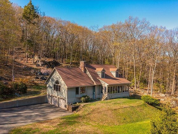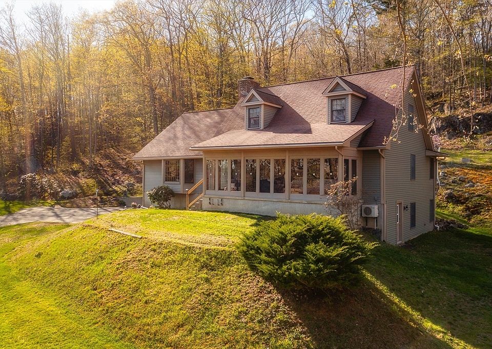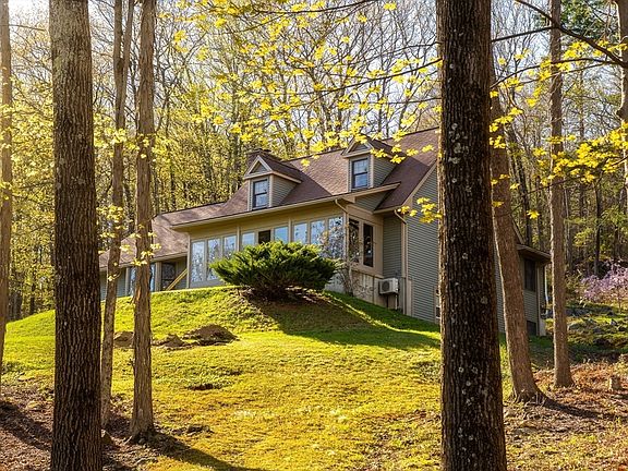 Beautifully maintained Cape-style home nestled in a peaceful country setting. A standout feature is the separate heated and insulated 2-car garage, with attached covered space for parking or additional storage, perfect for car enthusiasts or hobbyists, in addition to the attached 2 car garage.This pristine and well cared for home is ideal for entertaining with kitchen open to dining room and family room with cathedral ceilings, hardwood floors and cozy pellet stove. The separate living room has hardwood floors and woodburning fireplace and leads to the enclosed porch that has screens for warmer months and offers expansive views. The large primary bedroom has private bath with walk-in closet, jacuzzi tub and shower. The second floor has two huge bedrooms and full bath. The basement has additional full bathroom, laundry and direct access to the attached 2 car garage.