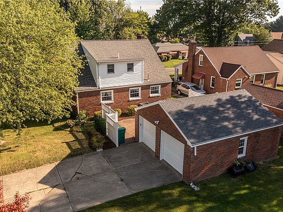 BRICK CAPE WITH SO MUCH TO OFFER! VIRTUALLY MAINTENANCE FREE! Updated windows, roof-2012, AC-2013, furnace-2010, fresh mulch-2022, garage door openers-2022, basement windows-2020. Corner lot w/2car det. garage. You will enjoy your morning coffee on your brick patio w/new privacy fence panels. Full bath/ 2 b.r's on main floor / Upstairs bedrooms have been converted to a master en suite w/walk-in closet, full bath and "den" or office area. Depending on your needs, this is a 4 BR home or a 3 BR w/master en suite on second floor. Easily converted to your personal needs as a family. Large rooms/hardwood floors. The first floor bedrooms and full bath allow for single story living if needed.