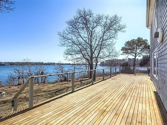 Waterfront on Bournes Pond, set on a cul-de-sac with Vineyard Sound sparkling in the distance. You will immediately fall in love with the blazing sunrises over the bay. The large waterfront lot as plenty of room for a pool as well as entertaining with the expansive waterfront deck and large yard. Feel free to have overnight guests with 3 oversized bedrooms and multiple gathering rooms. Spectacular water views from almost every room in the house. Kayak, fish, or paddle right from your own sandy beachfront. Spacious full-size basement with plenty of storage along with a 2-car garage with expansion possibilities. Passed Title V.