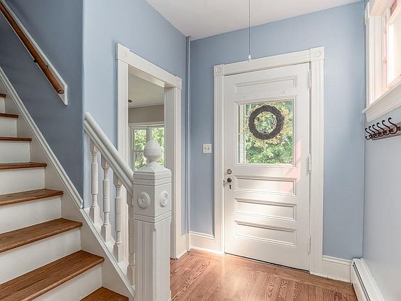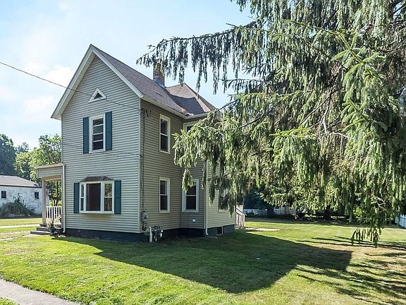 Pretty as a picture! Charming vintage colonial on fabulous level half-acre lot. Well maintained with numerous updates including vinyl siding & tilt windows; 200 amp electrical; young appliances & hot water heater; Nest programmable thermostat and more! Main level features gracious foyer with original stained glass and hand-carved woodwork; beautifully remodeled kitchen with cinnamon maple glass-front cabinets, natural gas stove and super-convenient mudroom; entertainment-sized dining room with built-in china cabinet and floating buffet; huge full bath with washer/dryer and ample linen storage. Three nicely-sized bedrooms on second floor with access to full height WALK-UP attic. Scenic views from large wrap-around deck; carriage house/workshop for all your toys & hobbies, and the absolutely perfect yard for outdoor fun. BRAND NEW hardwood flooring as well as beautifully refinished original oak. Town water & sewer; new gas line & meter. Come see all there is to love. Welcome home!