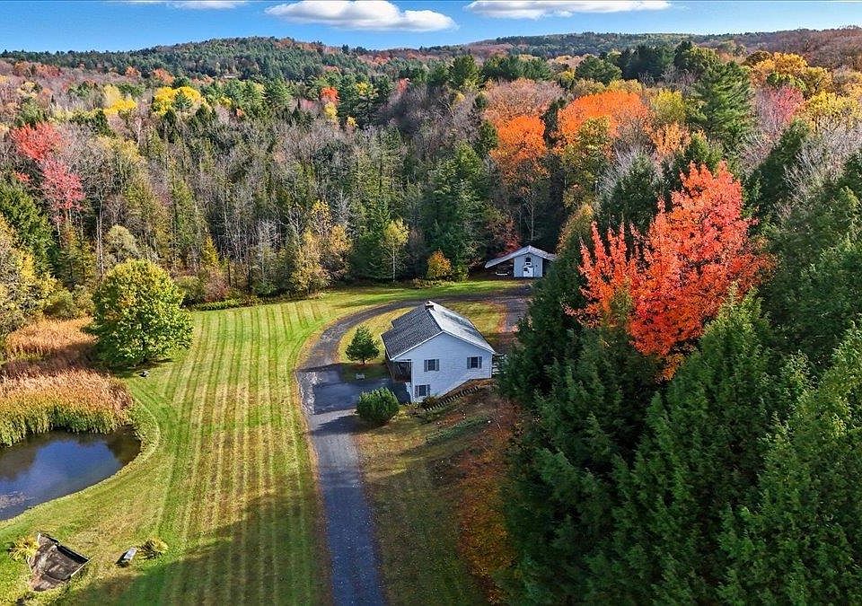 Set on 4.32 peaceful acres, this inviting Barre Town home offers comfort, space, and a scenic setting just minutes from local amenities. With 2 bedrooms, 3 bathrooms, and 1,664 square feet, it combines functional design with natural beauty. The main level features a bright, open kitchen with an adjacent dining room and living room, with a back deck off the dining room. Perfect for everyday living and entertaining. Both bedrooms are also located on this floor. The primary features an ensuite and a large closet space. Sip coffee on the front balcony to enjoy views of the charming pond, or relax on the back deck surrounded by wooded privacy. Downstairs, a finished walkout basement includes a versatile rec room with a full bath. The attached 2-car garage provides direct interior access, adding year-round convenience and additional storage. Just over the line from Barre City and close to the popular Cow Pasture walking trails, this property offers the best of both worlds: a tranquil country feel with easy access to town, shopping, and services—all within five minutes.