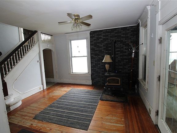 Welcome to 49 Catherine st. This home features 4 bedroom and 2 full baths and 1st floor laundry room. High ceilings and hardwood floors and large rooms and even an enclosed front porch. With a few updates and some painting you can have a nice solid house. Located on a corner lot with small fenced yard. Newer hot water heater some vinyl windows. Driveways located on catherine st and E North st. The wodstove and appliances convey with the sale. Property being sold as is. Sellers not removing anything from the property.
