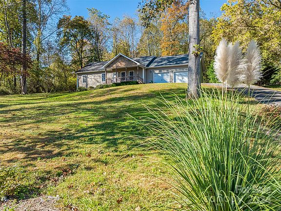 Discover this meticulously maintained one-level haven in Candler, 15 minutes from Asheville! This move-in ready home showcases vaulted ceilings, newly refinished hardwood floors, & a thoughtfully designed open floor plan. The bright kitchen features granite countertops, a central island, pantry, & new appliances (2020 refrigerator & dishwasher). Primary suite offers a walk-in closet & ensuite bathroom with double vanity. Recent upgrades include 2021 Bosch heat pump system with new ductwork, crawl space encapsulation, & comprehensive drainage improvements & new water heater. The private backyard, recently enhanced with professional landscaping (2022), reveals stunning long-range pastoral views. Enjoy outdoor living on the welcoming front porch or entertain in spacious backyard. The oversized garage provides ample storage and workshop potential. Don't miss this turnkey gem combining modern comfort with mountain charm! Untouched by Helene & move-in ready.