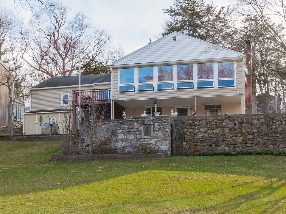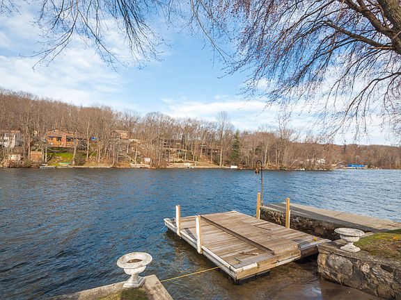 Best value of beautiful and serene Candlewood Lake property with 75 feet of direct waterfront complete with patio and dock with two boat slips. Watch the sunrise from the spacious open floor plan with wall of windows overlooking panoramic views of Candlewood Lake. Galley kitchen on main level with walkout to mud room and deck. Spacious bedrooms with lots of closet space. Main level full bath with subway tile and lower level half bath has full potential. Custom built-ins & special features add charm to this lake style living home. Second kitchen in lower level perfect for entertaining family and friends with bonus room leading to sprawling lawn and lake. New front stone walkway & great covered back porch. 2 car garage & circular driveway.
