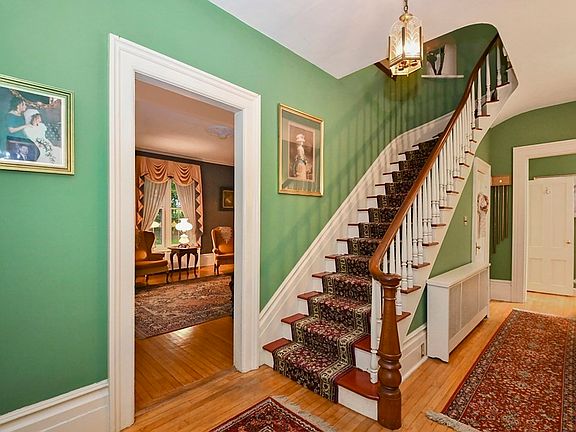Spectacular Gothic Colonial with all the charm and structural uniqueness of the 1850's yet sprinkled with the comfort of modern amenities! From the moment you enter you will be captivated by the Turned Staircase and Bannister flanked on each side by a Formal LR and Library with 9.6 Ft Ceilings, Custom Crown Moulding, Baseboard and Trim and Hardwood Floors! The Library has 4 sets of Built In Bookcases/Cabinets, a Pellet Stove and Mini Split for A/C and Heat! The Formal Dining Room has 2 Corner Built in China Cabinets, Crown, Chair Rail and Hardwoods! The 3 Season Porch extends your outdoor living overlooking the exterior deck! The Eat in Kitchen offers New Oak HW Floors and Lower Cabinets, DW, Range as well as an original pantry cabinet and upper metal cabinets! Gothic Windows and Arched Ceiling grace the 2nd Floor Foyer! 4 Spacious Corner Bedrooms offer excellent/cedar closet space! 2nd Floor Full Bath has direct access from Large BR with WIC. 3 Car Garage w/Loft Area! A Must See!!!
