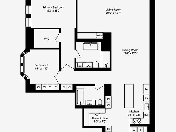 STUNNING SOUTH, EAST AND WEST FACING 2 BEDROOM WITH HOME OFFICE + 2 1/2 BATHROOMS
