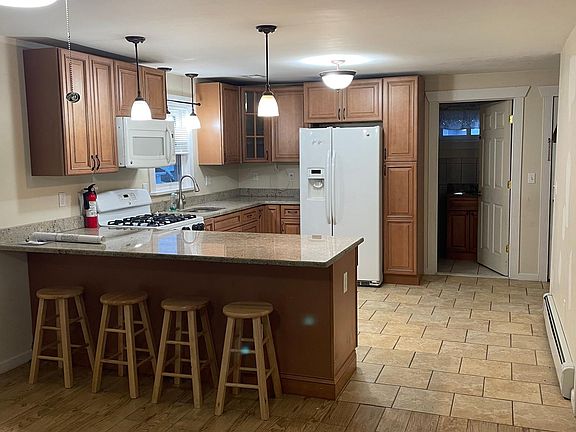 Recently updated townhome style apartment. Spacious living room with new wood floors and ceiling fan, beautiful kitchen with granite countertops and custom cabinets, 3 bedrooms, 2 full bathrooms, a large basement with a washer, dryer, sink, counters and cabinets, two private entrances, and off-street parking for one car. Additionally this apartment has central cooling.