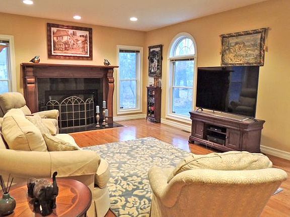 Among the tall trees, awaits this impeccably spacious, 5,068 sq.ft. picture perfect home. The grand 2-story foyer is open and bright, and features a large arched window, oak staircase, crown molding, arched doorways, and hardwood flooring that sprawls throughout most of the main level. The welcoming, dual entry living room is the place where everyone wants to come together to relax, and it's flexible floor plan and perfectly placed gas fireplace allows you multiple layout options. With room to entertain, right down the hall is the family room -- the tray ceiling, and beveled out wall of windows makes a perfect pool table/rec room. The exceptionally large eat-in kitchen includes oak cabinetry with Corian countertops, center island with seating for two, pantry, built-in refrigerator, dishwasher and desk. Open the French doors to the expansive back deck -- giving an easy flow indoors to out. The upper level bedrooms have walk-in closets. Each bedroom boasts one unique architectural design -- window seating or formal sitting area. Feel like royalty has you enter the master suite through the side-by-side double doors. The attached formal sitting room is complete with a gas fireplace. Relax in the HUGE, private, spa-like en-suite with a jetted tub, stand-up shower, double sink vanity and wall of windows. The 30'x20' multi-use bonus room is yet another great common space -- media/play room? The lower level is full, and unfinished, perfect for storage or finishing! Attached 3-car garage. Backyard shed for outdoor tools and equipment. ALL of this on 1.83 level, partially wooded acres -- AND priced $135k under assessed value!! Close to shopping and entertainment. Town of Lansing.