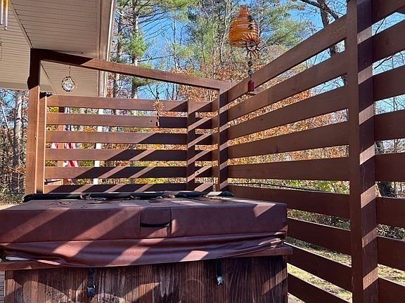- Exterior features: Deck, Deck - Wood, Rain Gutters, Hot Tub/Spa, Storage, Screens, Fenced Yard, Garden