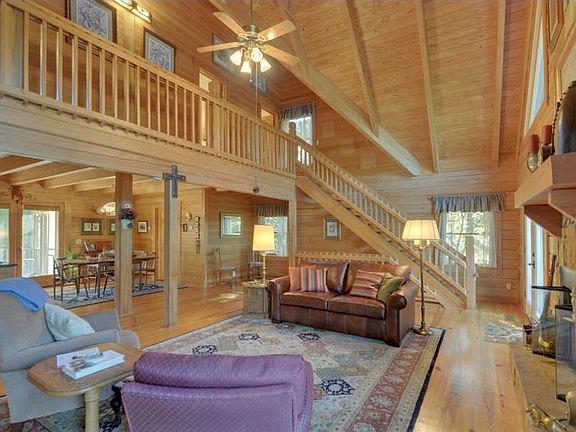 Remarkably constructed beautiful solid log home with warm wood interior. Vaulted ceilings, stonefront fireplace in main living area/great room, lots of high front windows, great kitchen w/most appliances and granite counters. Master on main w/library shelves. nice master bath. Upstairs has two good sized bedrooms and a bath, Huge drive-under, end of house garage w/wood burning stove. Well-landscaped lawn and house is move-in ready.RIGHT ON COOSA CREEK, a trout stream. Sit on the screened porch and listen to the water rushing over the boulders. Peaceful and tranquil.. Check out the Virtual Tour on-line. Remarkably constructed beautiful solid log home with warm wood interior. Vaulted ceilings, stonefront fireplace in main living area/great room, lots of high front windows, great kitchen w/most appliances and granite counters. Master on main w/library shelves. nice master bath. Upstairs has two good sized bedrooms and a bath, Huge drive-under, end of house garage w/wood burning stove. Well-landscaped lawn and house is move-in ready.RIGHT ON COOSA CREEK, a trout stream. Sit on the screened porch and listen to the water rushing over the boulders. Peaceful and tranquil.. Check out the Virtual Tour on-line
