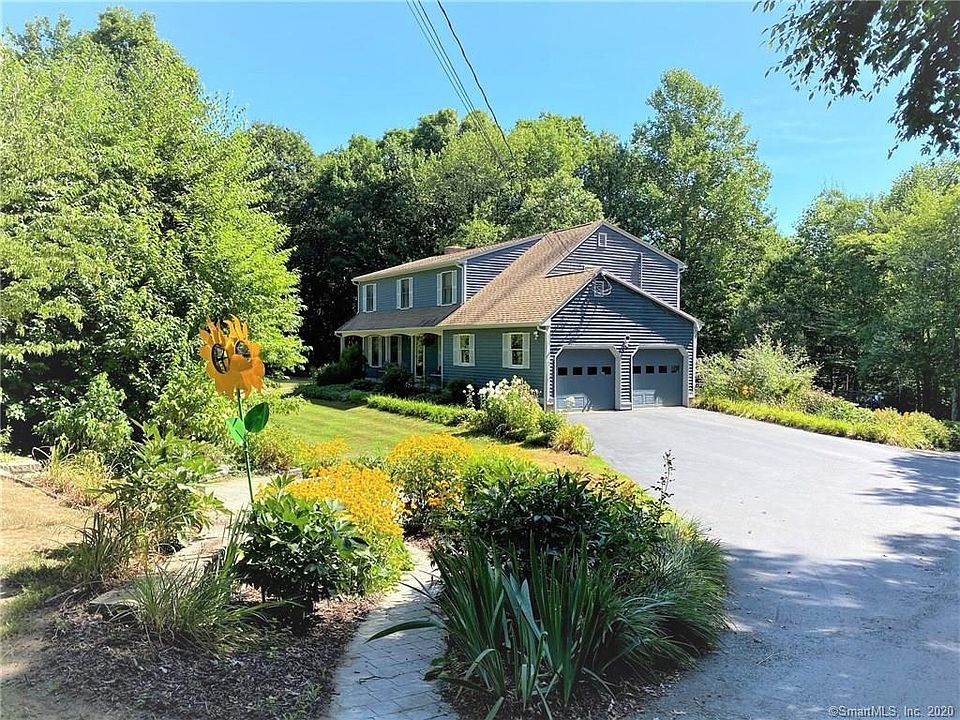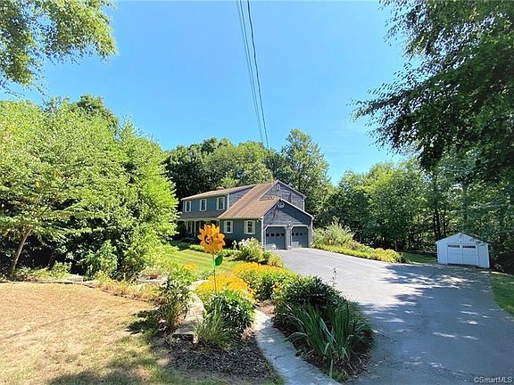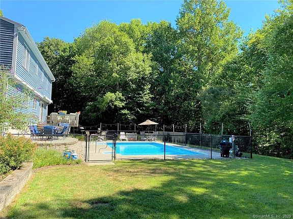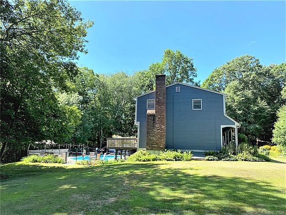Storybrook Colonial set back off the road with a lush tree lined driveway. Beautiful landscaped patio greets you as you approach the property. Summer is enjoyed on the terraced back private deck overlooking a large in-ground salt water pool. Set on 1.62 acres, this allows for plenty of play or gardening and there is a perfect wooded fire-pit area with trails surrounding the property line. Step inside to enjoy the open great room with a brick fireplace and a newly remodeled kitchen that greets the morning sun. The chef will enjoy the Silestone Island when preparing meals using the many cabinets surrounding the counters. The Samsung appliances are stainless steel. Notice the Moen touch less faucet installed over the corner sink off the breakfast bar. The main level boasts Hemlock wood flooring in the formal Living and Dining rooms. A half bath and laundry area complete the first floor. The upper level has a spacious master bedroom with a full bath, three other bedrooms and a second full bath. The lower level has two finished rooms and a workshop area adds living space. This home offers wonderful options for indoor and outdoor entertaining. The roof was replaced about 6 years ago. There is also a new Buderus boiler.