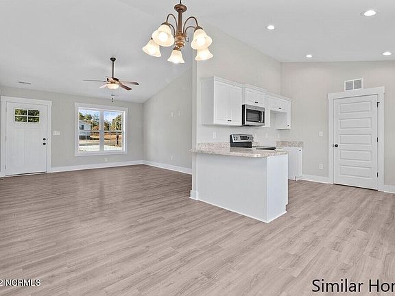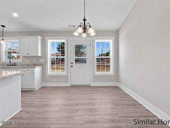 The Southport XL plan by Holbrook Homes, located in Jones County's newest neighborhood, Patrick Farms, will be situated on a large lot and just minutes to area shopping. This floor plan is sure to impress with over 1400 square feet, 3 bedrooms, 2 baths, and a bonus/study. Featuring custom cabinets, LVP flooring, stainless steel appliances, granite countertops, and so much more! Don't miss your chance at this lovely home in Richlands. Schedule a tour of the community and a similar home today! Disclaimer: Square footage and dimensions are approximate, subject to change without prior notice or obligation and may vary in actual construction.