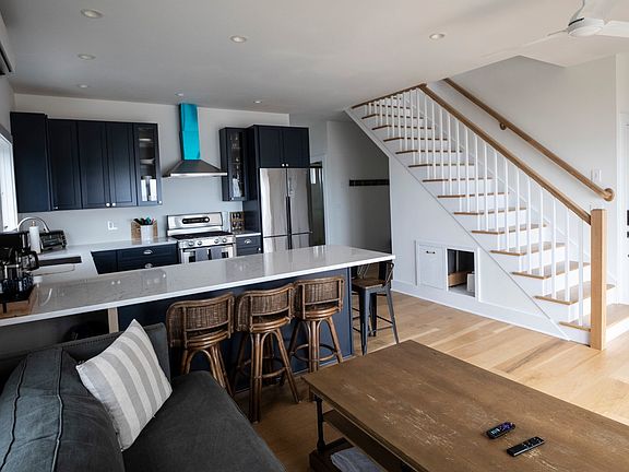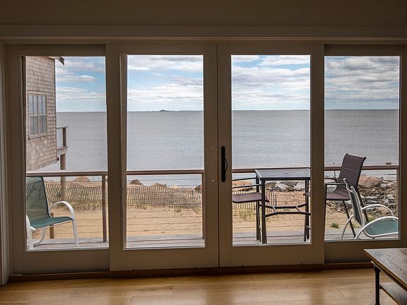 AVAILABLE FOR THE MONTH OF AUGUST!! A few dates in June and July available. This sophisticated getaway by the sea overlooks the Long Island Sound and is located in the unique Circle Beach community. The bedrooms offer views of the beautiful and diverse East River. The second floor provides a second living room and another expansive look at the Long Island Sound. Recently completed, this property is the ultimate way to unwind in style! Highlights of this house include a beachfront bar and grill area, a waterfront balcony and deck, and a fully equipped kitchen with stainless steel appliances, quartz countertops, and ocean views that making cooking a joy. The first floor bedroom has a queen size bed and adjacent full bath. Two more queen beds plus a twin are on the second floor. Sleeps 6 comfortably. House complete with linens, towels, and a fully stocked kitchen. All utilities included. Pets welcome! Circle Beach is a great place for biking or walking and catching stunning sunrises and sunsets. Located in Madison, CT, the town offers several beach options, a beautiful downtown with shopping, excellent restaurants, and much more on the Shoreline. Enjoy your summer on Circle Beach! Available by the week in May and June for $6000/week. Larger House next door is also available for rent in May and June, ask about available dates.