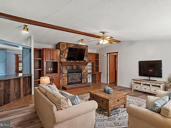 Secluded yet surprisingly close to local amenities, including the shopping outlet stores. Park in the large driveway or in detached garage, then walk to the rear. The view will amaze you, you won't want to leave! The first thing you'll notice is the relaxing sound of the pond's waterfall, the stone work, and the "battlefield-like" feel of the yard. There's also a good chance you'll see deer grazing or roaming on a portion of the 3.23 acres. The interior of the home features 3 bedrooms, 2 full baths, a surprising amount of space, a wood-burning fireplace in the large living room, and a primary bedroom with an amazing attached full bathroom, complete with a huge walk-in closet. The kitchen offers plenty of cabinetry and counter space for all your meal prep and storage. Make this your primary residence, seasonal home or hunting camp!