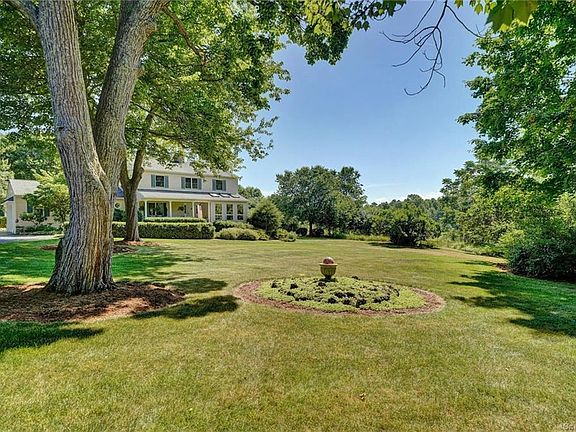 When only the best will do! This quality crafted center hall Colonial, set on peaceful 1.4 acres, has been meticulously maintained by its only owners! Welcoming front porch! Rich in detail! Crown moldings throughout! Solid wood interior doors! Lots of windows! Foyer has plank flooring and bannister that were preserved from an old home that was originally on property! Vaulted sunroom with skylights! Huge LR has brick fireplace with old barn beam mantel! 320 additional sq ft in cozy den! Great kitchen with granite countertops, island, Brazilian cherry flooring and slider leading to lovely trex decking with awning! Wonderful grounds! Lovely enclosed raised bed gardens that were featured in Gardens of Goshen tour! Consider the possibilities for 28X40 pole barn that has 3 overhead doors, water, electric, telephone and cable!