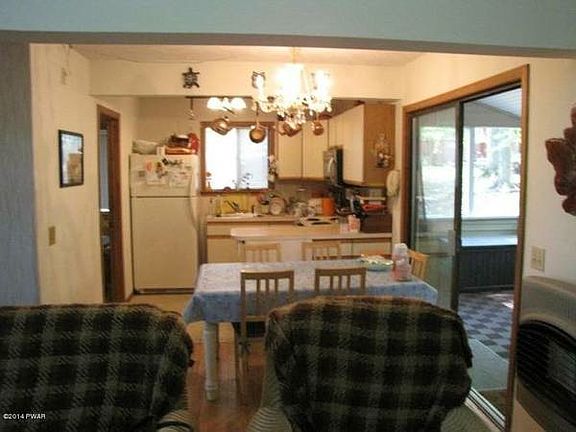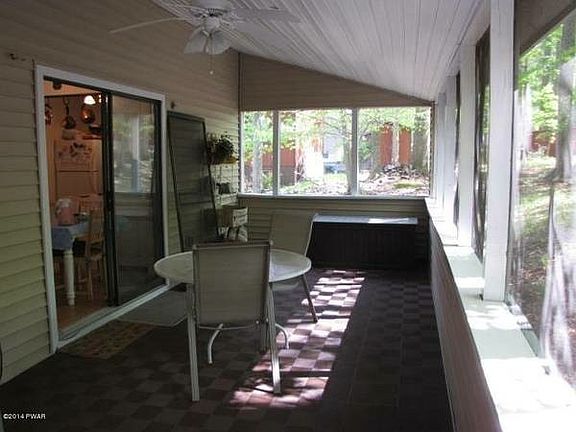 Cozy chalet with 3 bedrooms, 2 bathrooms, Jacuzzi, big living room with cathedral ceiling, wood burning fireplace, huge screened porch, open floor plan, new roof, new siding and new water heater. Located in Wallenpaupack Lake Estates, one of the best residential communities in Poconos. Community with central water and sewer, access to lake Wallenpaupack with marina on the lake, two interior lakes, two swimming pools, one indoor pool, tennis courts, clubhouse, gym sauna, lots of activities for kids and adults