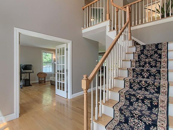 Beautiful Colonial situated on 1.8 acres located within a small cul de sac of similar homes on the West Side. Grand vaulted front foyer entrance leads to first floor office/den and formal dining room.Sit and enjoy the open flowing floor plan with views of the private manicured backyard and pool. Large kitchen with expansive counter tops and cabinets, a lunch counter and breakfast nook open to a comfortable family room with fireplace, built in bookcases, a glass sliding door leads to the back deck and patio around the fenced in ground pool. First floor laundry/half bath and mudroom entry from 3 car garage. Exceptionally large take your breath away master suite with a walk in room like closet, a sitting/dressing room, hobby room or nursery and extra extra large master bath with separate soaking jetted tub,shower, toilet room and two sink vanities.Three additional bedrooms have new carpeting. Feels like the country within a neighborhood! Very convenient location