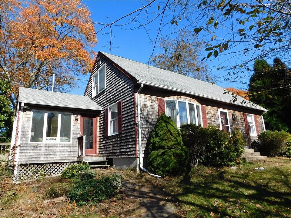 Three bedroom two bath Cape with definite potential for four bedrooms, There are two large bedrooms up with a full bath, then a first-floor bedroom and a first-floor den which is currently being used as a dining room (has closet) first floor offers another full bath, hardwood floors ,sunroom with cathedral ceilings, beautiful windows and wood stove. All on an OVERSIZED LOT. Newer roof.