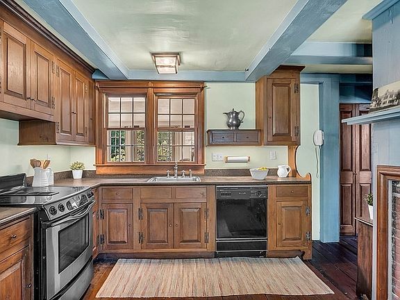 Some homes just naturally give you a warm feeling as does this meticulously maintained 1830 Antique Colonial in town Center! Filled w/history and sunlight it reflects the care and attention of generations of owners who have kept authentic details intact like hand hewn ceiling beams, corner posts, wide-board flooring and 7 fireplaces with simplistic mantles and chimney cupboards, while integrating new mechanical systems and modern amenities. Recent improvements include 2017 heating & cooling systems, painted exterior as well as approved drawings to build a barn similar to where one stood many years ago. Well suited floorplan includes large family room added in 2011 w/a brick floor and walls of windows overlooking fenced-in gardens plus large historic living room w/built-ins. Dining room easily seats 10 guests next to the country kitchen and breakfast rm. Original front entry w/turned staircase leads to primary BR suite, 2 family BRs, a bath and small BR/study w/access to walk-up attic.