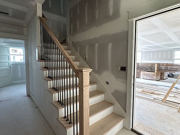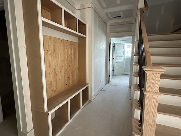 Welcome to this stunning new construction home, offering the perfect blend of elegance and modern convenience. Situated on 2.22 acres, this 4-bedroom, 4.5-bathroom home boasts a Hardie board and brick exterior with a spacious 3-car garage. From the moment you step onto the front porch with its beautiful tongue and groove ceiling, you’ll feel the warmth and character of this home. Inside, the grand vaulted ceiling in the great room creates an open and inviting space, complemented by a cozy fireplace and custom built-in cabinetry. The spacious kitchen is a chef’s dream, featuring a large island, quartz countertops, gas cooktop, wall oven, and a hidden pantry with a Costco door, making grocery unloading effortless.