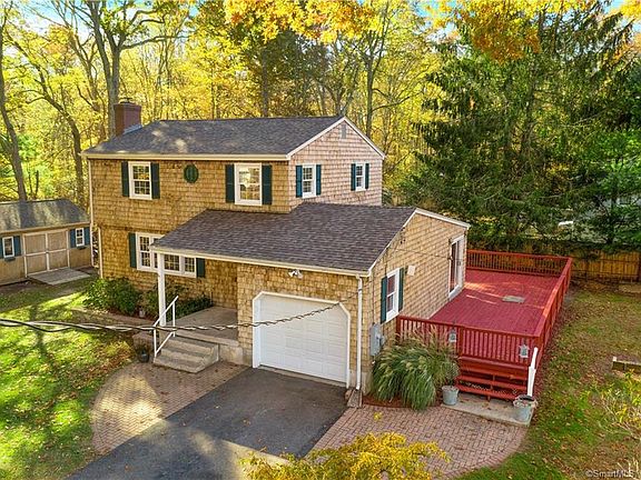 Enjoy the benefits of a neighborhood setting, yet minutes from area beaches, downtown & boardwalk, Rocky Neck State park, & I-95! Move in condition! Newly painted interior & hardwood floors beckon you into this inviting, light & bright 3 Br, 1.5 bath colonial situated on level, private corner lot. Gracious & spacious living room w/ masonry fireplace, formal dining room, and eat in KT w/ new stainless steel appliances. 1st floor den. Slider off the den, leads to the wrap around deck- imagine the possibilities for entertaining family & friends! House abounds with great features- hot water baseboard heat, 2 year old roof, Thermo pane windows, natural cedar shingle siding. Plus-this home is available for immediate occupancy!