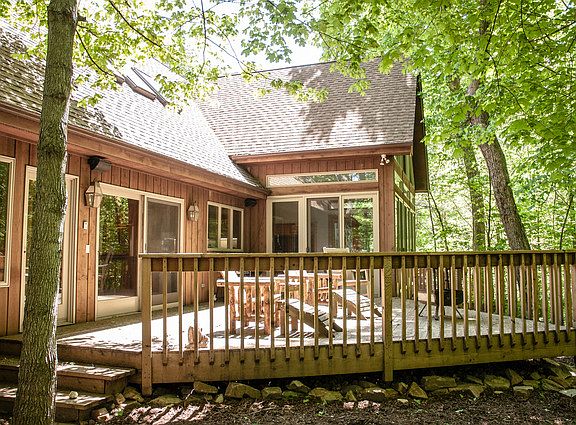 Solitude among nature with wooded views from every window.A 1 1/2 story home sits on 5 secluded acres.Kit w/island, hrdwd flrs, bltr pntry.Fmly rm focuses on Flr to clg windows & wood burn FP.Both main flr bdrms w/private baths & W/I cedar clsts.Mstr w/steam shwr.Bed 2 w/FP now used as lbry.Loft w/WI clst & R/I for potential 3rd suite.Sun rm w/deck access.Deep pour L/O bsmnt.Creston Electronic control system thru house