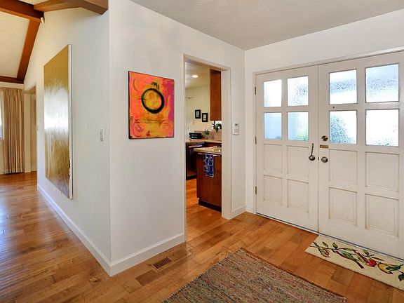A very desirable, close to everything location--around the corner from shopping and dining, Pebble Beach walks, easy access to the highway*SINGLE level, spacious, updated 2 bedroom/2 bath, approx. 1567 sq ft unit that backs to a serene, private greenbelt in this well maintained complex*New maple wood floors thruout, remodeled chef's dream kitchen w/ high-end stainless appliances, granite countertops, breakfast bar & office/computer area adjacent to the large dining/living room w/ cozy fireplace*Enclosed patio in front for morning coffee*Extra large 2 car garage, laundry inside house, tons of storage*2 full bathrooms, extra large bedrooms with BIG closets, light bright unit*New lighting fixtures, newer carpet in bedrooms & more & more & more! Move right in today & enjoy forever! Only one available in this complex right now! Space for office area, huge living room-sofa bed works! Come see this beauty!