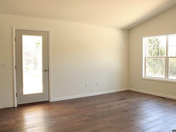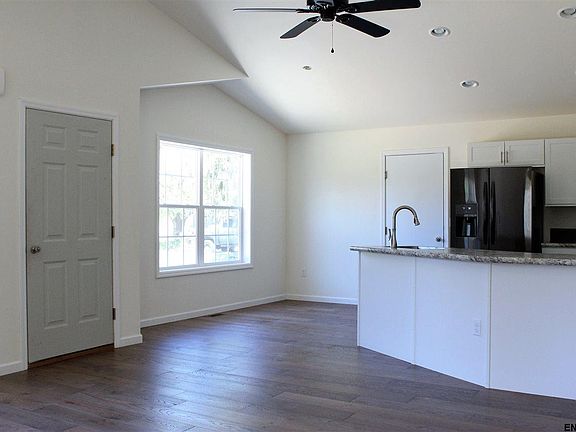 Classic Clean lines, with stone accents, this terrific ranch welcomes you inside this well thought out floor plan, Enter the open floor plan & cathedral ceiling, kitchen with white shaker cabinets, tile accents, hardwood flooring and a gas fireplace. Wiggle your toes in a plush carpet and enjoy two full custom baths, with glass shower doors and enclosures. Side covered porch and patio for entertaining. Gas heat, AC, large level yard, driveway and landscape package included. Best priced home that's new